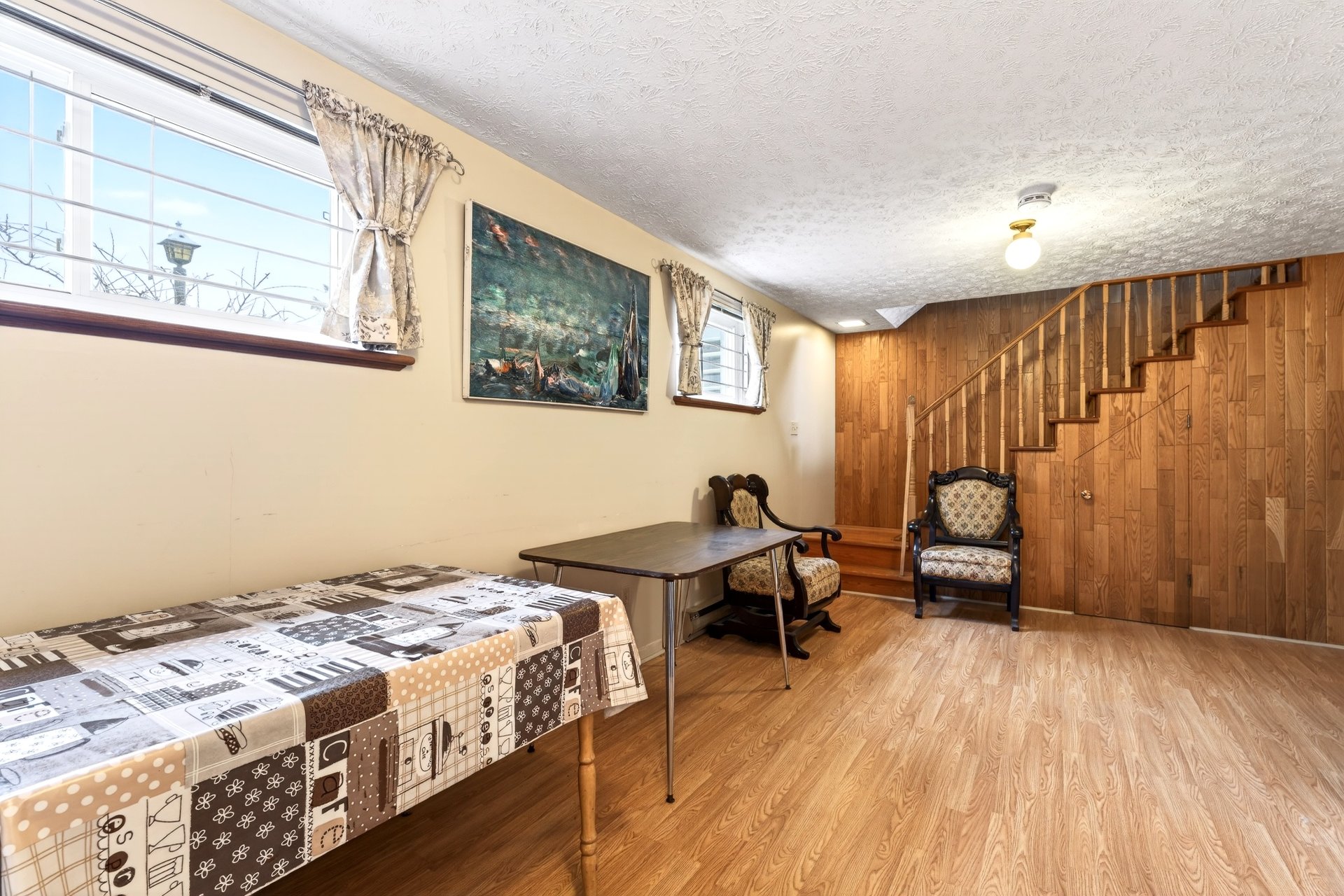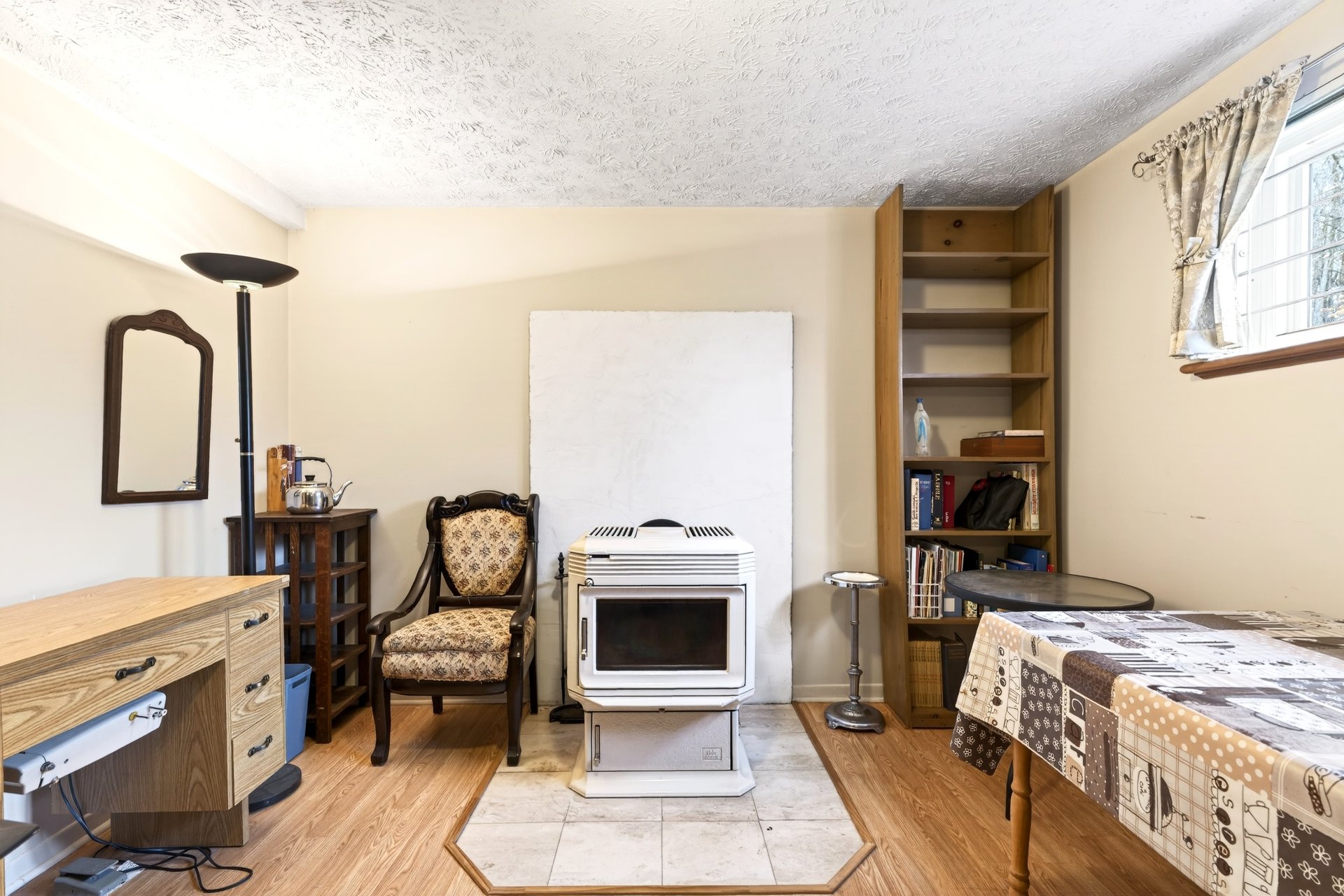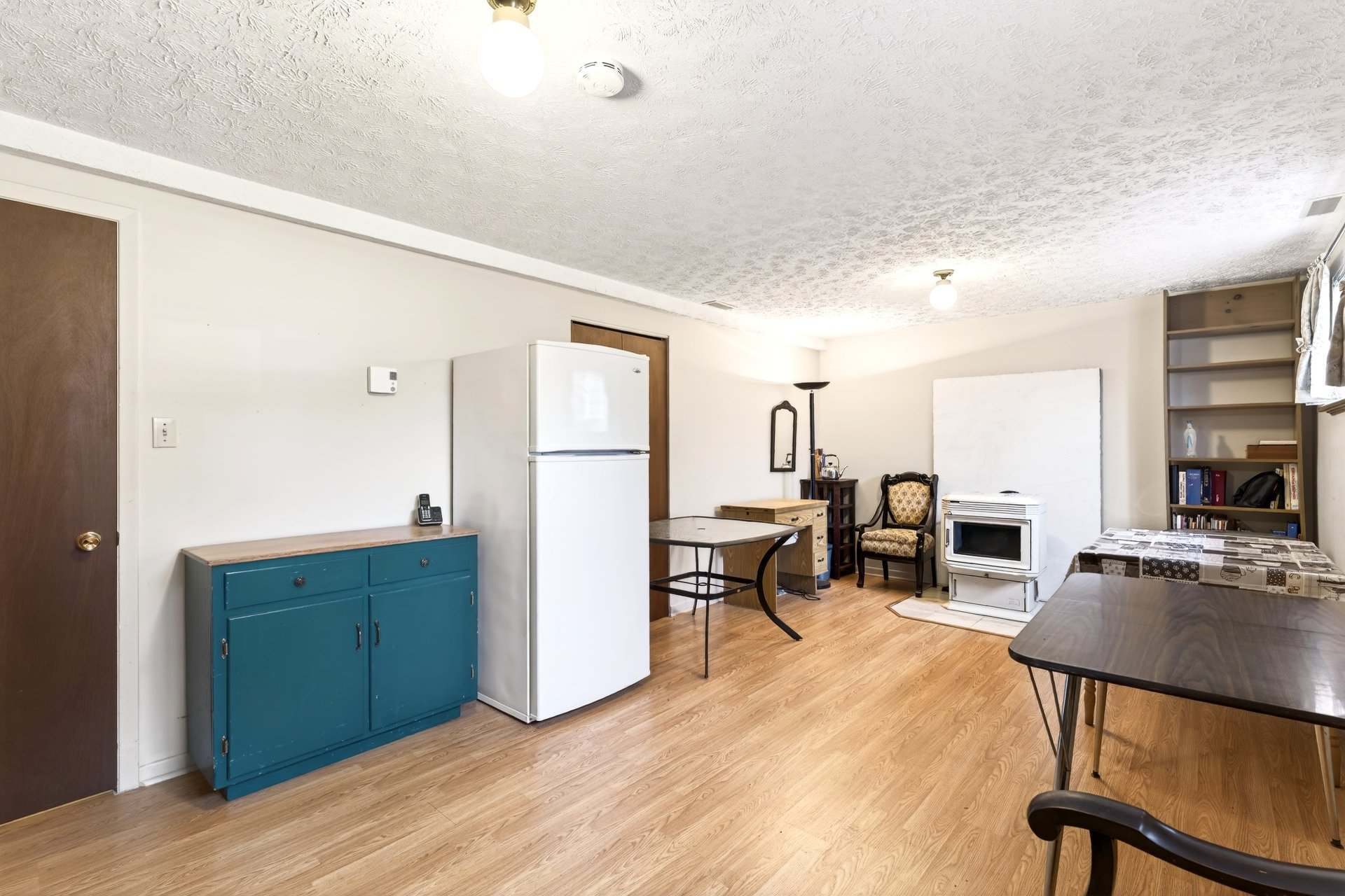 Au sous-sol, une spacieuse salle familiale avec poêle au