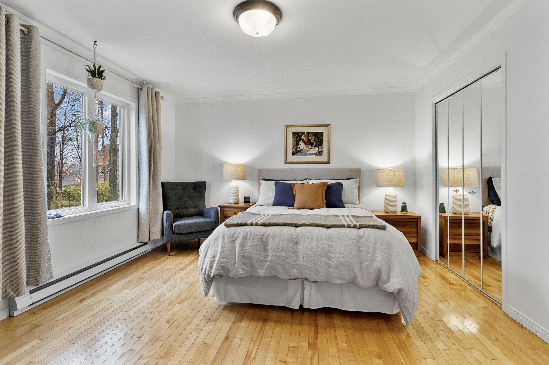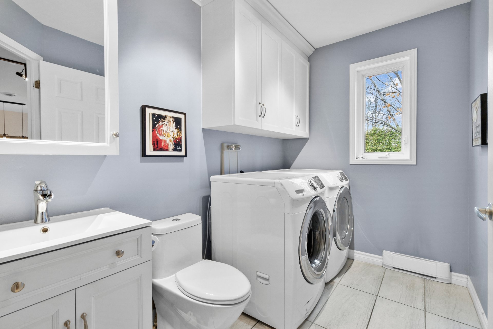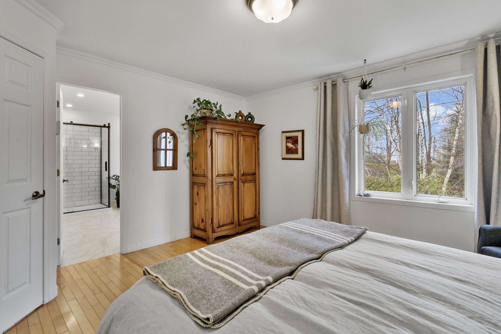 À l'étage, vous trouverez trois chambres à coucher de bonnes dimensions, dont une chambre principale offrant un accès direct à une somptueuse salle de bains rénovée par une designer professionnelle. Celle-ci propose une douche en verre, un bain autoportant et un comptoir avec double lavabo, créant un véritable espace de détente digne d'un spa à domicile.