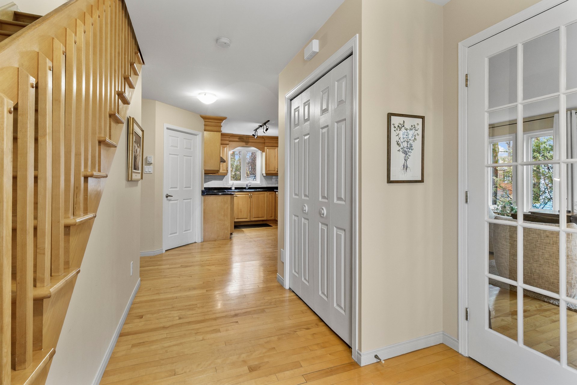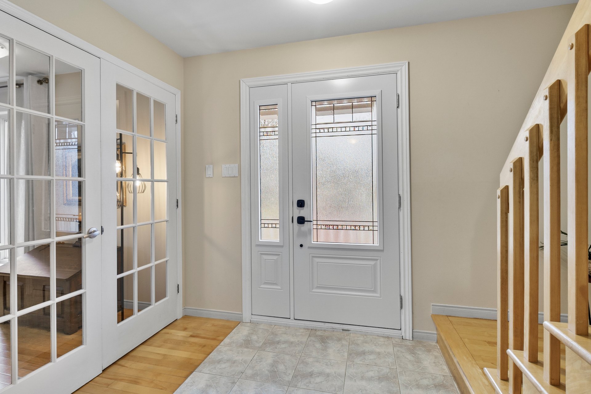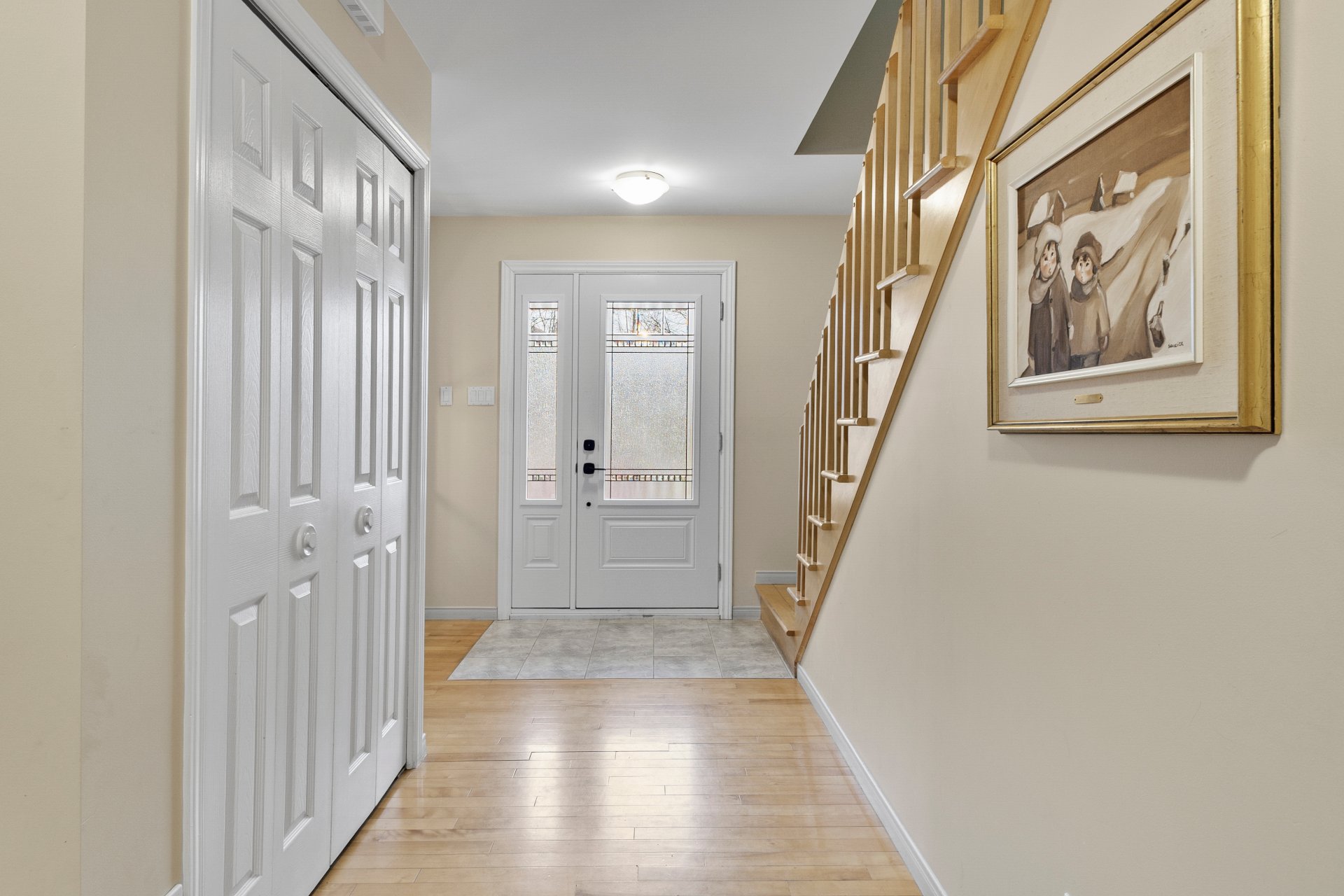 Dès l'entrée, vous serez charmé par le hall accueillant avec sa garde-robe double et ses magnifiques portes françaises qui s'ouvrent sur un salon chaleureux, agrémenté d'un foyer au bois et d'une belle fenestration.