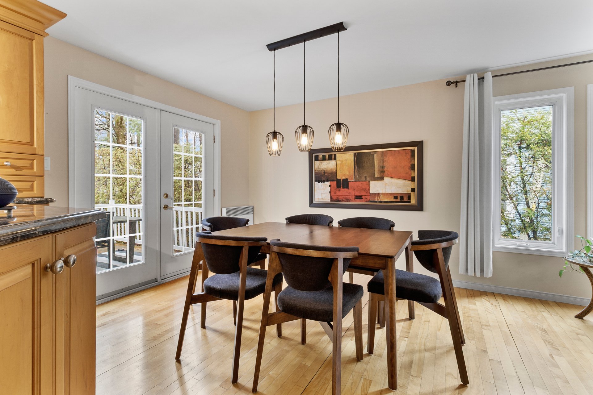 La salle à manger conviviale propose un accès direct à la cour arrière, idéale pour les repas estivaux et les moments en famille.