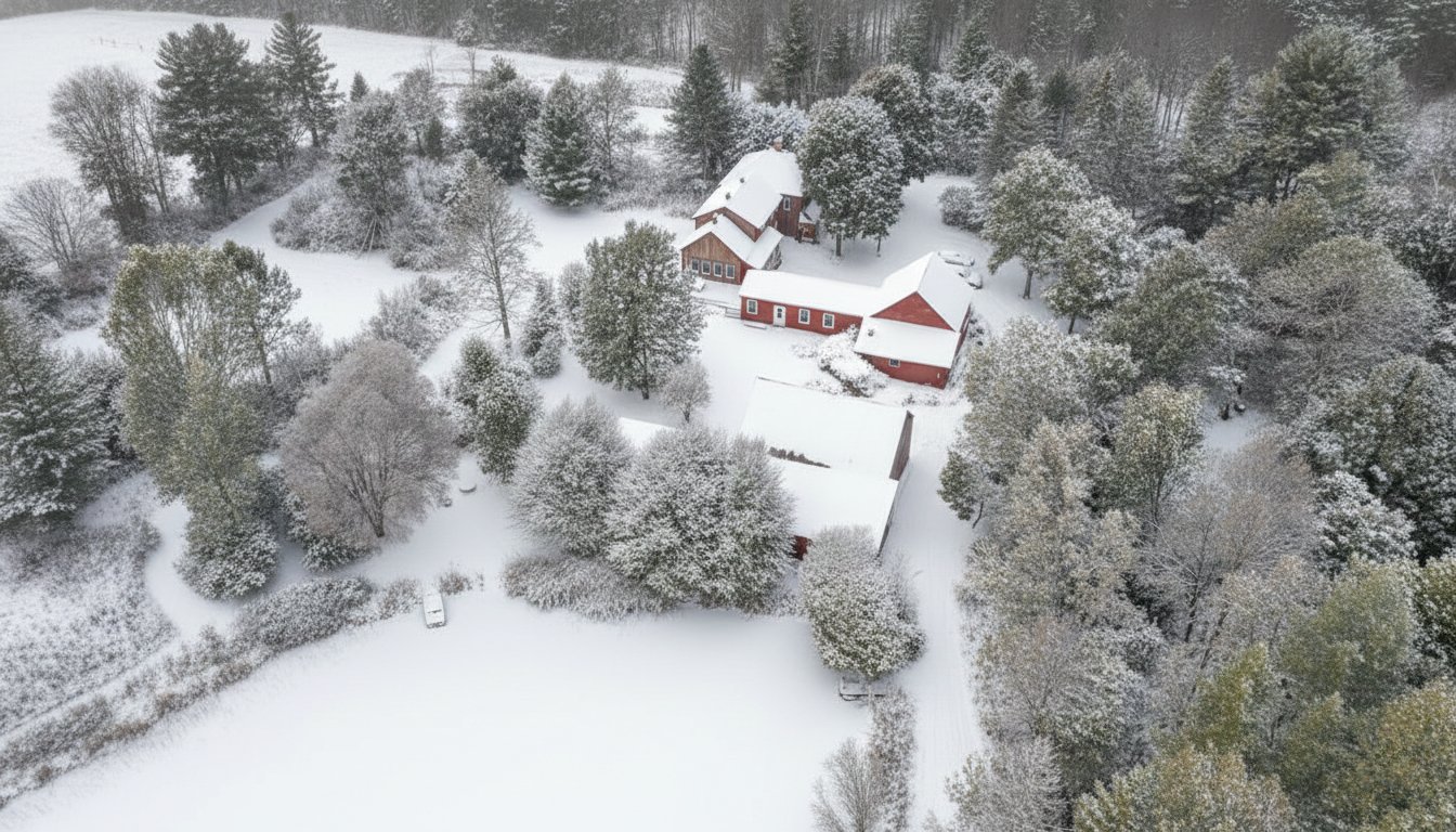 | Exclus | électroménagers, meubles et effets personnels des vendeurs, matériaux dans les ateliers et la grange, outils, tracteur a gazon, mini-pelle, tondeuse, souffleuse, poules et équipements associés, routeurs, caméras de surveillance, modem internet. Roulotte stationnée en bordure du plus petit champ, plateforme pour tente au sud-est du lac, roulotte sauna. |