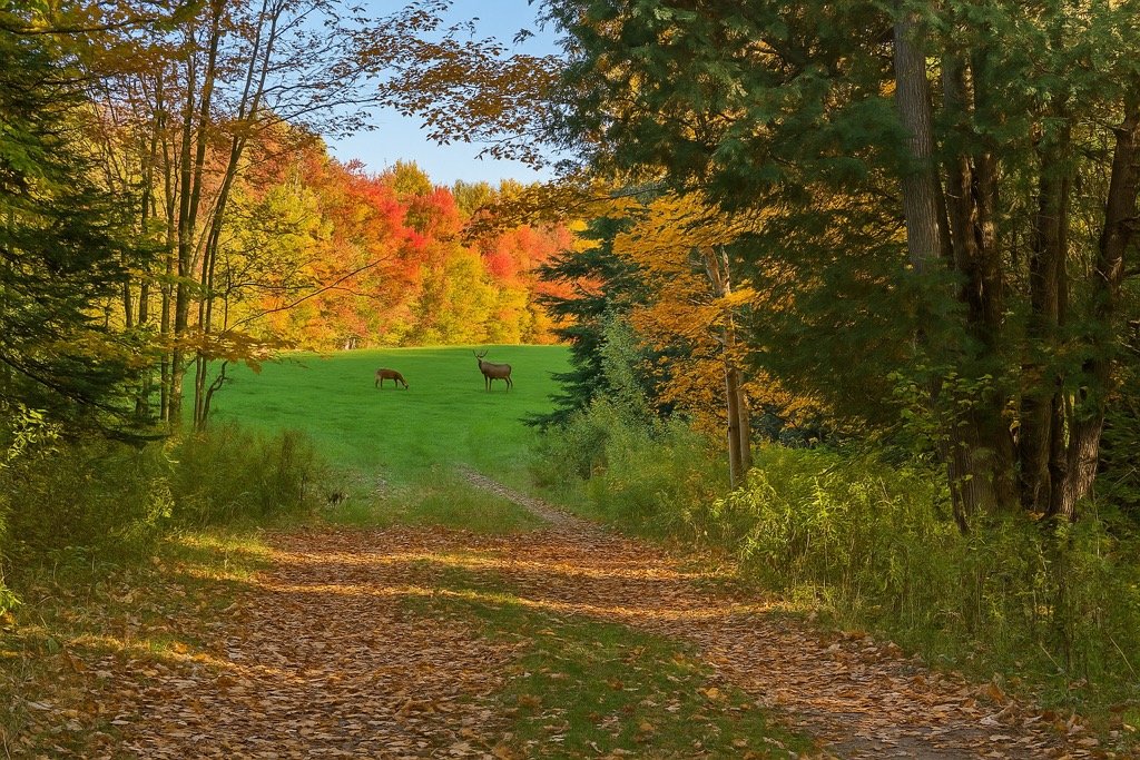 prairies, lac et sentiers privés composent un décor