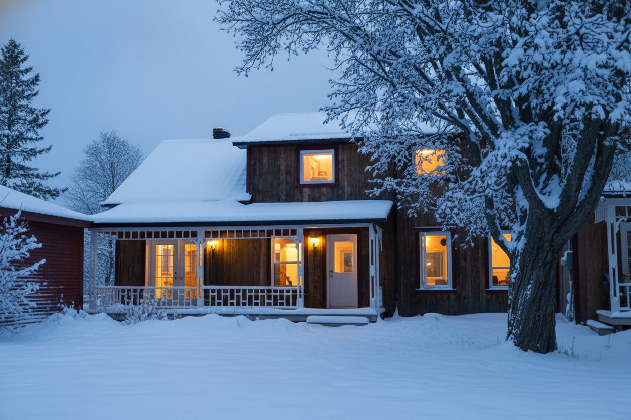 extérieur de pruche, fenêtres, entrée électrique, puits