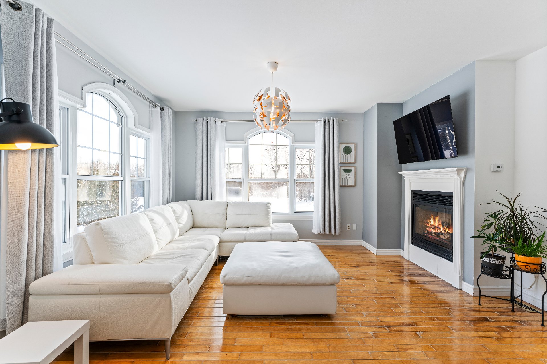 accueillant, doté d'un foyer au propane et de planchers de