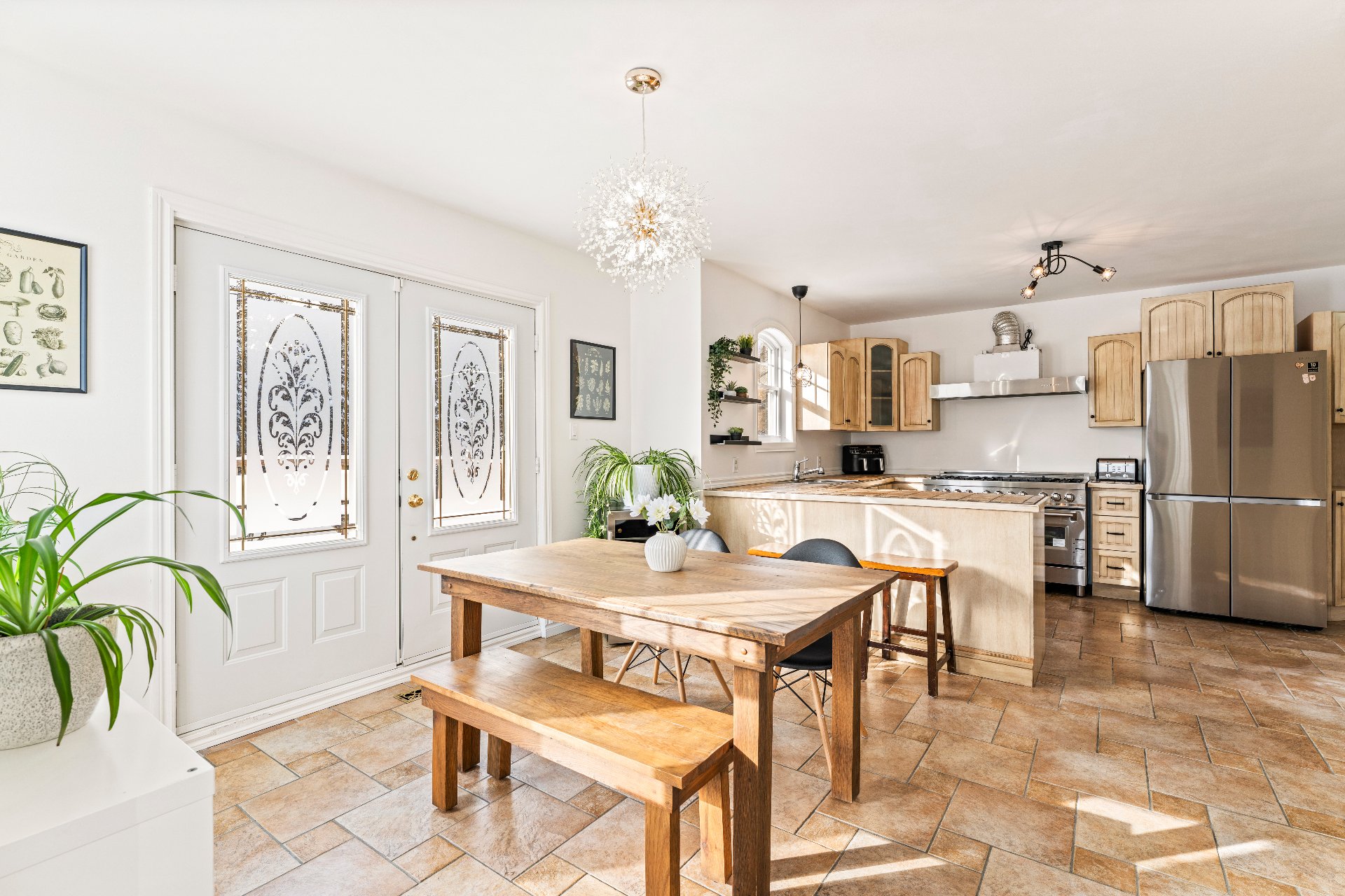 s'ouvre sur la salle à manger baignée de lumière naturelle