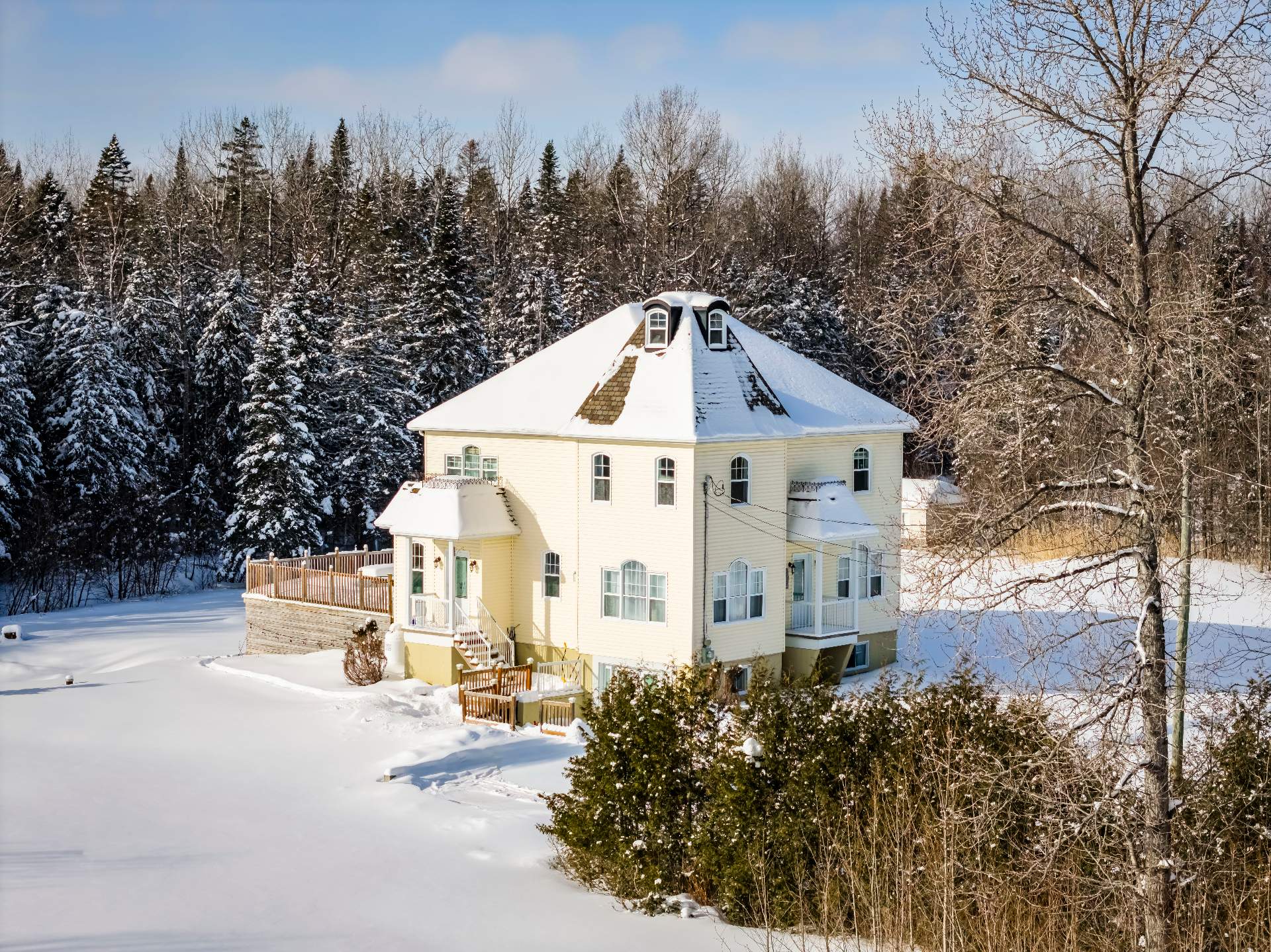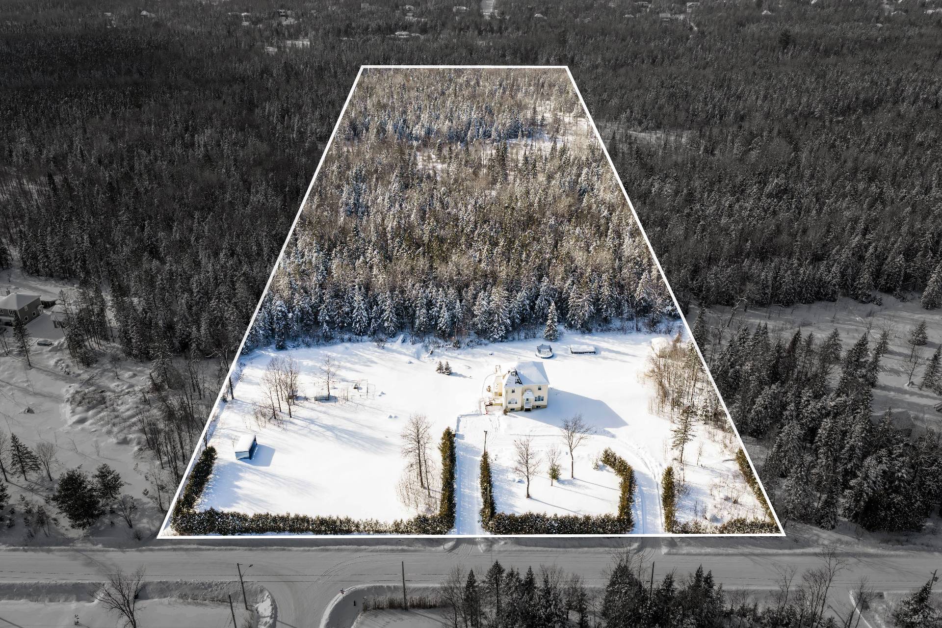 Implantée sur un magnifique terrain boisé de 15,8 acres,