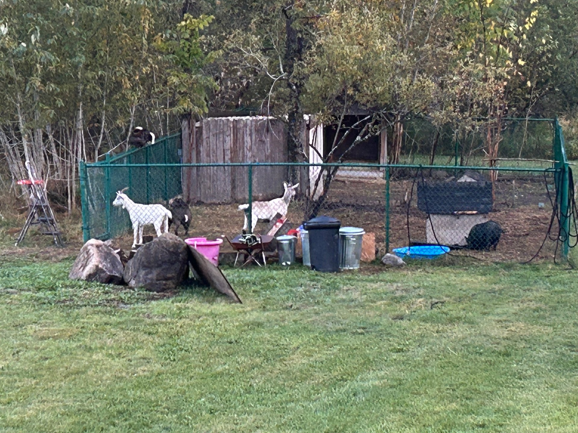 | Inclus | Pôles à rideaux, trampoline 14 pieds, cuisinière au propane, abris pour chevaux tel quel, enclos pour animaux tel quel. Piscine hors terre sans garantie légale de fonctionnement ou de qualité. |